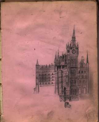 | based on a pen sketch by William Dinnage, a relation of his father in Dorking. |