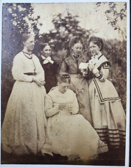 There was a box in the hall of my grandparents' farm, Mons Hall. It was a cube about 60cm each way, of oak, and almost certainly made by one of the Misses Wagstaffe. It was used to store many old family photographs, but unfortunately the hall was very damp, and this reached the photographs and ruined many of them, before I was allowed to rescue them by my grandmother, and dry them out as best I could. This would perhaps have been in the 1980s. At a later date I sorted the photographs, and placed them in an album, and annotated many of the photographs to the best of my ability. I have today photographed the album and reproduced it here. Some photographs are poor copies of pictures in another important Gent family album that my grandmother gave to my cousin Helen Sanders of Appledore.
